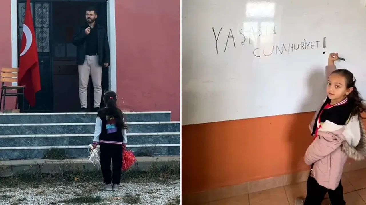 Okulun tek öğretmeni Muhammet Bağ ile 3’üncü sınıf öğrencisi İlayda Kozlu, Cumhuriyet’in 102’nci yıl dönümü münasebetiyle düzenledikleri törene saygı duruşu ve İstiklal Marşı ile başladı.