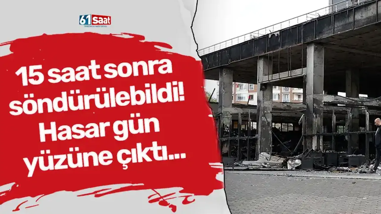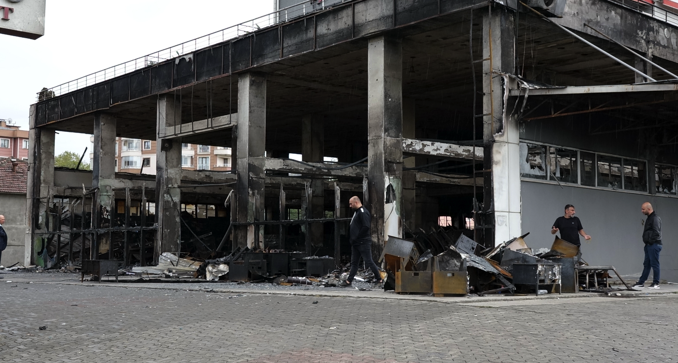 Trabzon'un Akçaabat ilçesinde hırdavat ve yapı malzemeleri satışı yapılan alışveriş merkezinde çıkan ve 15 saat sonra söndürülen yangının neden olduğu hasar görüntülendi.