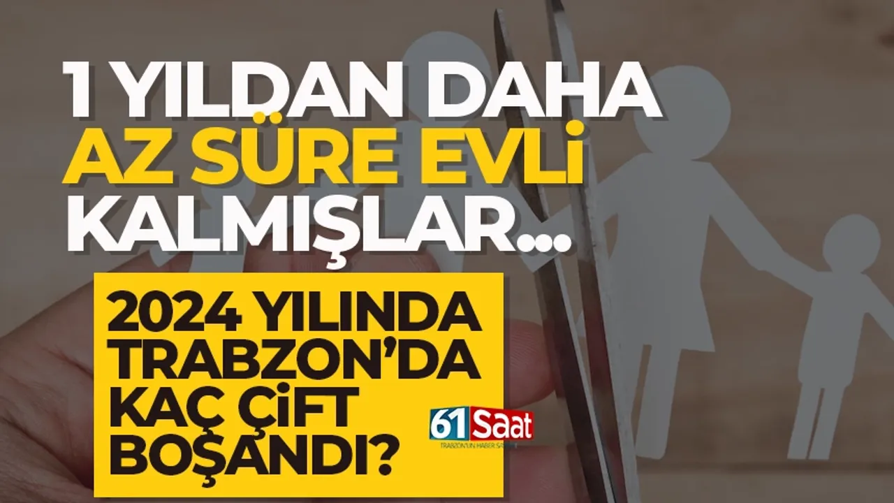 Trabzon’da boşanan 2024 yılında boşanan bin 81 çiftten, 26’sının 1 yıldan daha az, 76’sının 1 yıl, 54’ünün 2 yıl, 58’inin 3 yıl, 42’sinin 4, 52’sinin 5 yıllık evli olduğu kaydedildi.