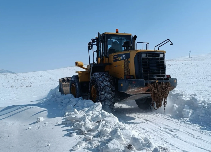 Büyükşehir Belediyesi'ne bağlı karla mücadele ekipleri, kapanan yerleşim yeri yollarını açmak için çalışma başlattı.
