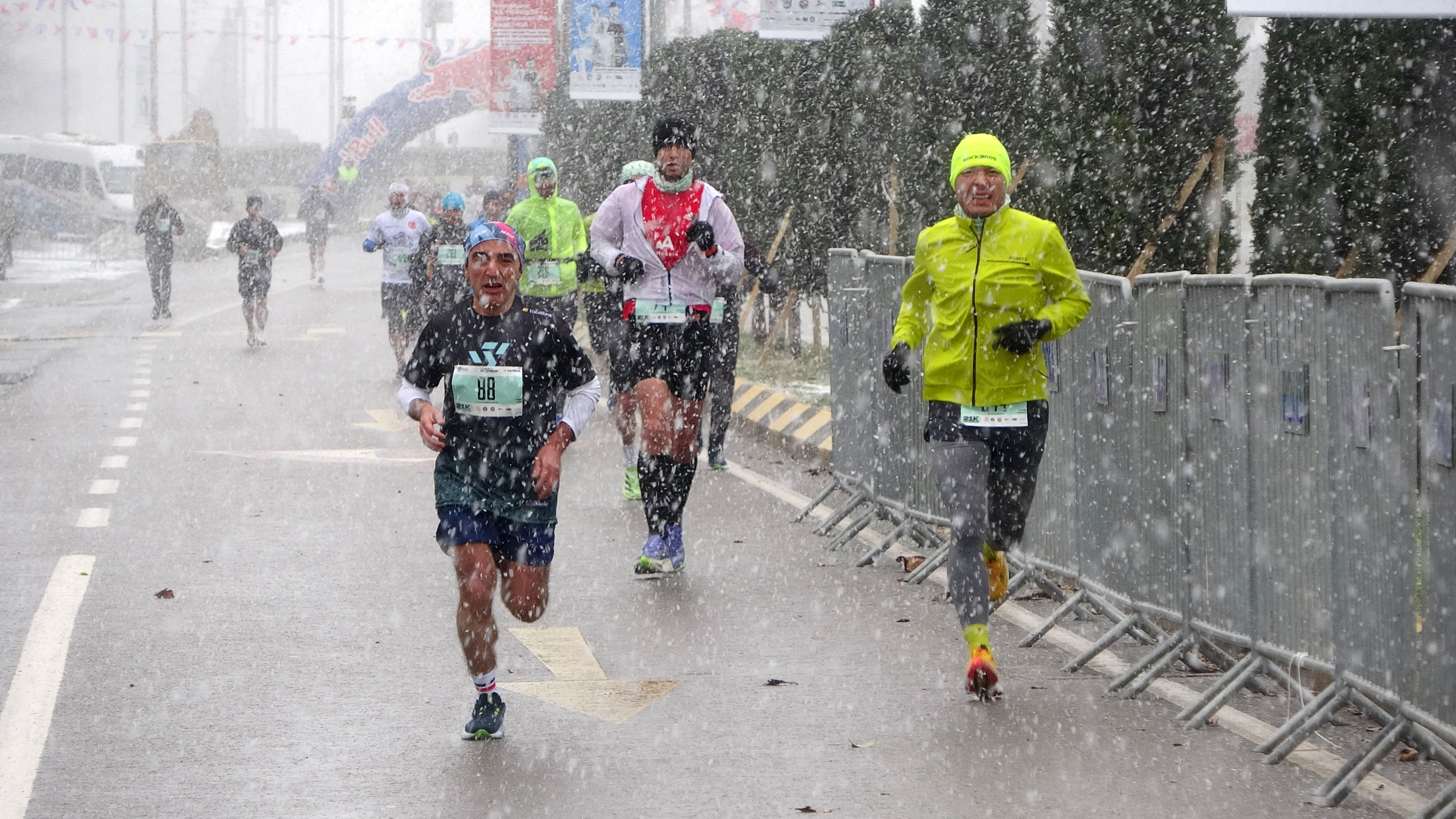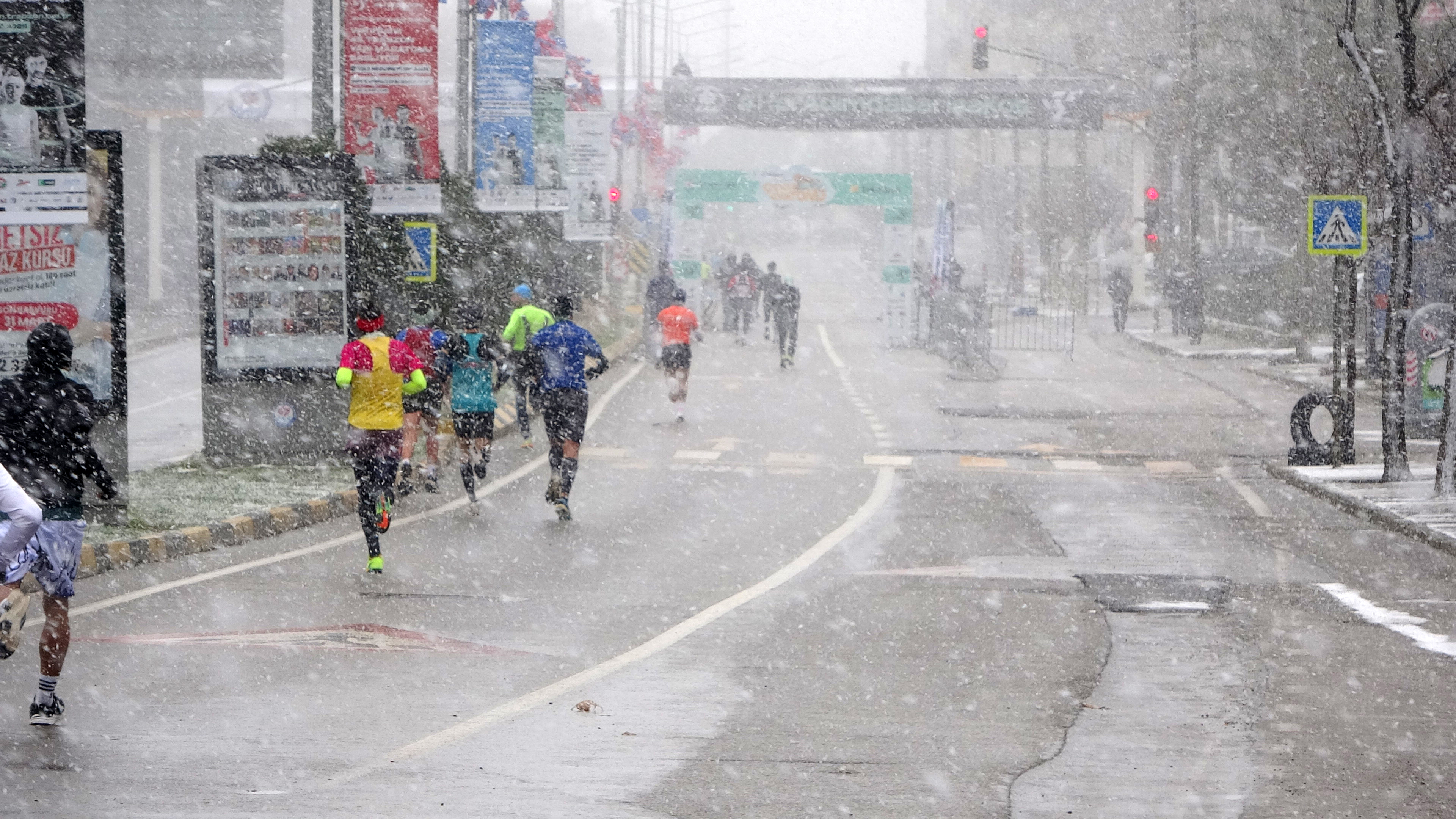 VakıfBank 45. #Trabzon Yarı Maratonu yoğun kar yağışı altında devam ediyor. pic.twitter.com/w2iUpNUhpQ