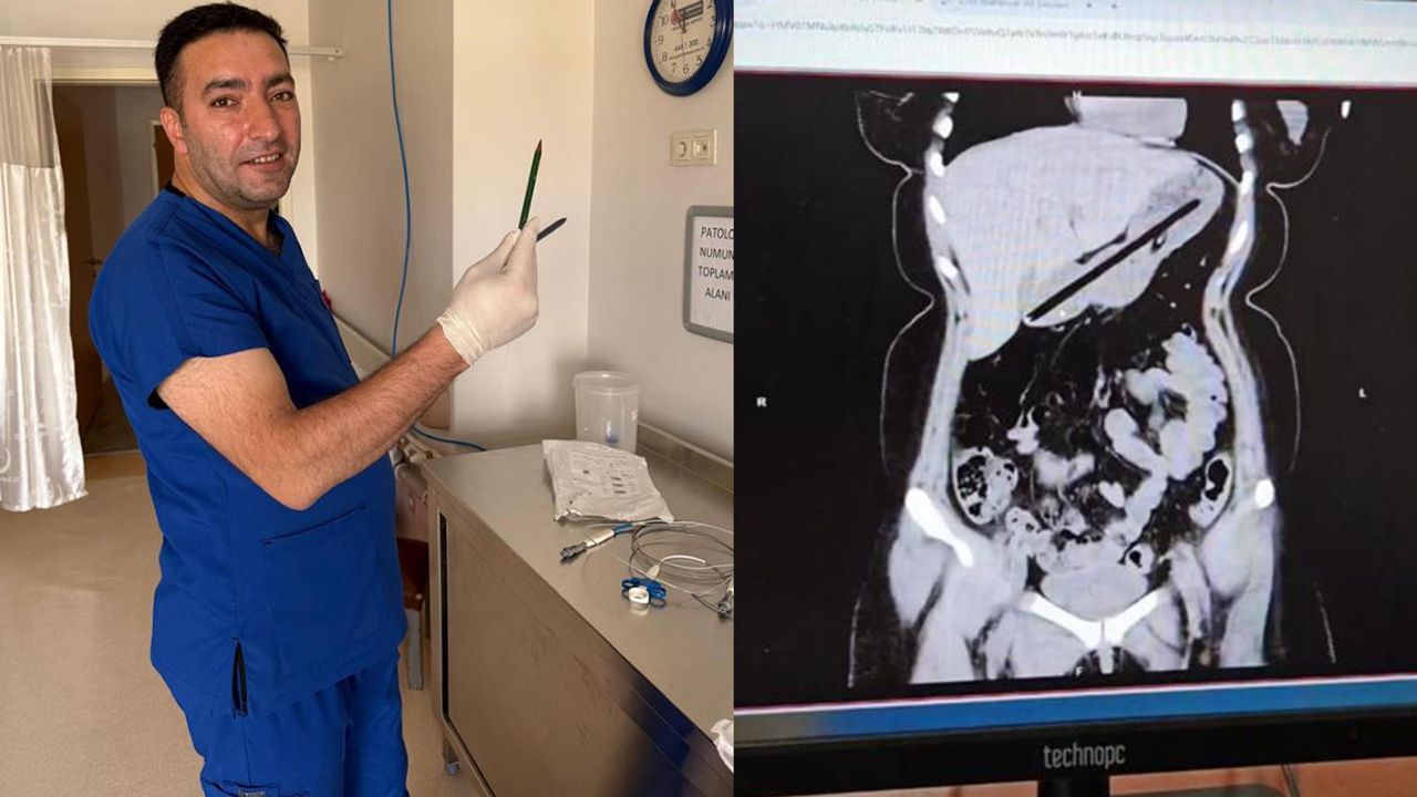 Ailesi tarafından Ağrı Eğitim ve Araştırma Hastanesi’ne götürülen genç kadının yapılan tetkiklerinde midesinde yabancı cisim olduğu tespit edildi. Genel Cerrahi ekibince gerçekleştirilen yaklaşık 1,5 saatlik operasyonla iki kalem endoskopi yöntemiyle çıkarıldı.