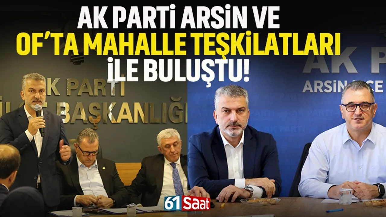 Arsin ve Of ilçelerinde düzenlenen toplantılarda konuşan AK Parti Trabzon İl Başkanı Sezgin Mumcu, teşkilat yapısının en önemli unsurlarından biri olan mahalle birimlerine dikkat çekti. Mumcu, mahalle başkanlarıyla yapılan görüşmede güncel gündem maddeleri ve sahadaki çalışmalar hakkında istişarelerde bulunduklarını belirtti.