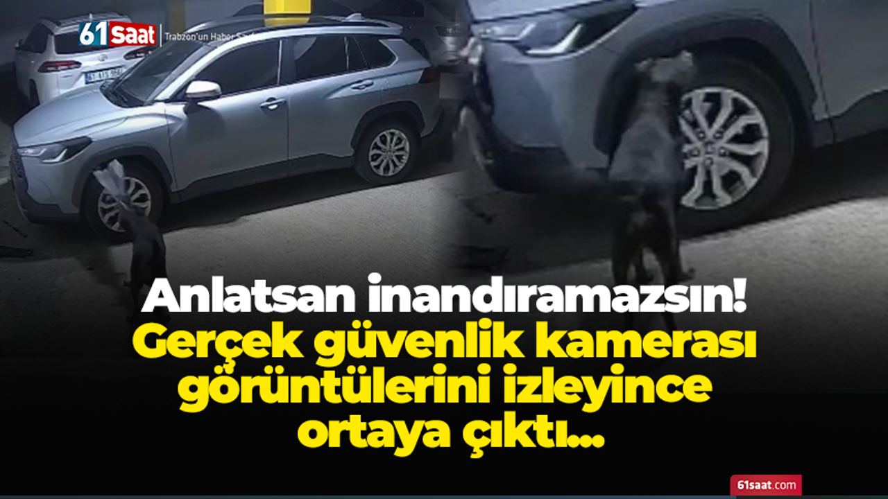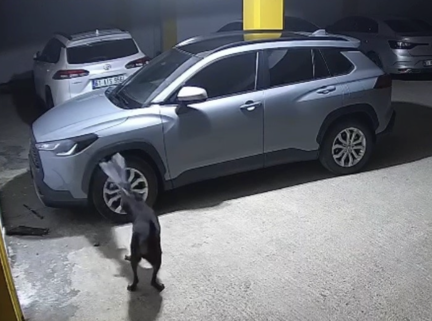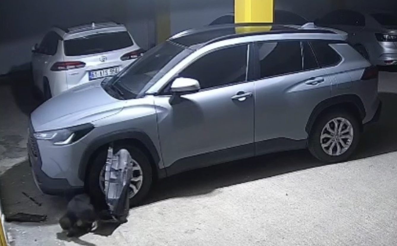 Ardından köpekler, kedinin bulunduğu yere ulaşmak için aracın sol ön lastiğinin çamurluk davlumbazını dişleri ile çekerek bulunduğu yerden çıkardı. Köpekler, kediye ulaşamayınca bir süre sonra otoparktan ayrıldı.Sabah işe gitmek üzere aracının yanına gelen B.K., gördüğü manzara karşısında büyük şok yaşdı. Vatandaş, gerçeği güvenlik kamerası görüntülerini izleyince öğrendi.