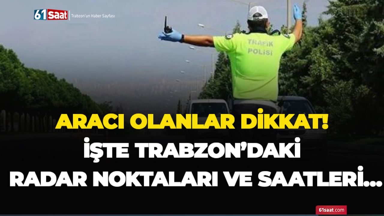 Trabzon Emniyet Müdürlüğü 12 Ocak tarihinde hangi noktalarda sabit ve gezici radarların hangi saatler arasında görev yapacağını açıkladı.