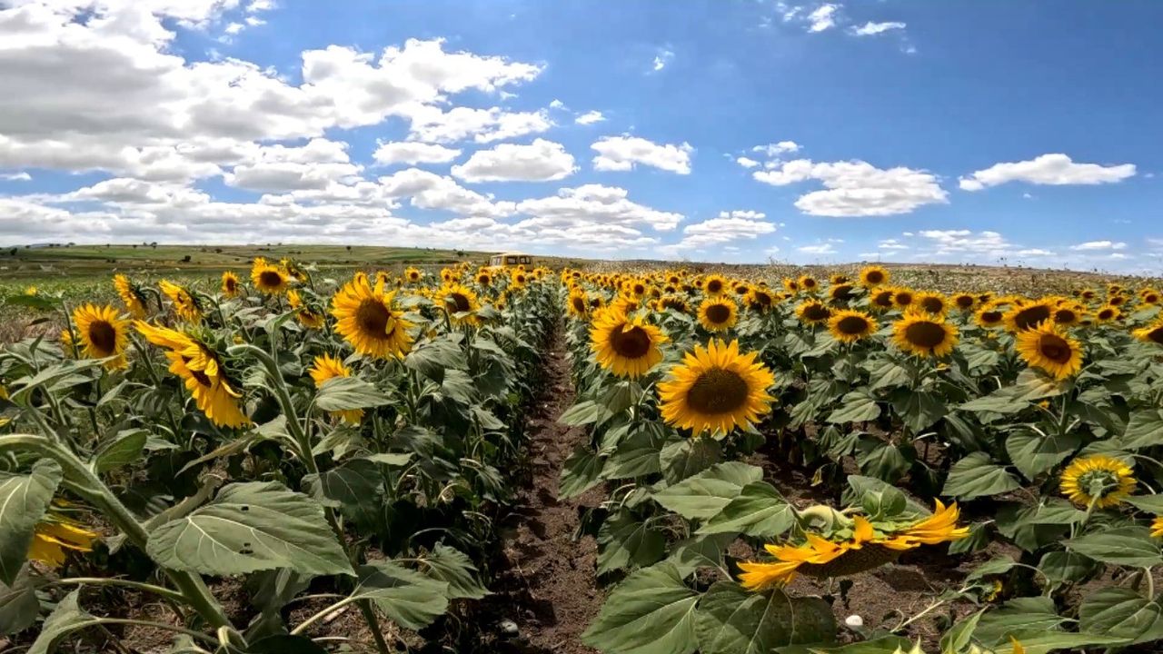 Çiçek açan ayçiçeği tarlaları görsel şölen oluştururken, bu sene 'çayır tırtılı' görülmemesi üreticiyi sevindirdi.