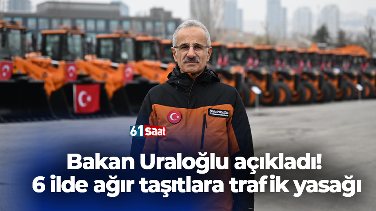 Bakan Uraloğlu, “Tedarik sürecinde aksama yaşanmaması gereken araçlar hariç olmak üzere ağır taşıtların bugün saat 13.00 ile pazar günü saat 13.00 arasında İstanbul, Kocaeli, Sakarya, Düzce, Bolu ve Ankara illerini kapsayacak şekilde D100 ve D750 Devlet Yolları ile TEM ve Kuzey Marmara Otoyollarında seyirlerine izin verilmeyecek.” dedi.