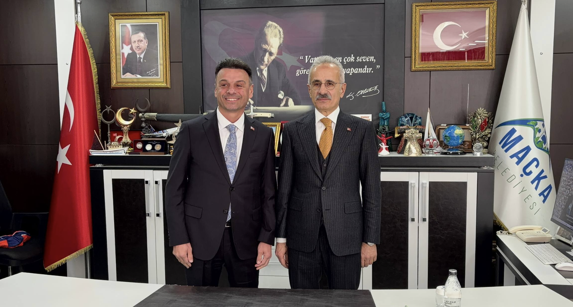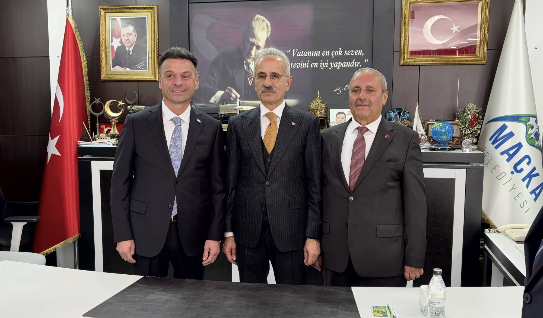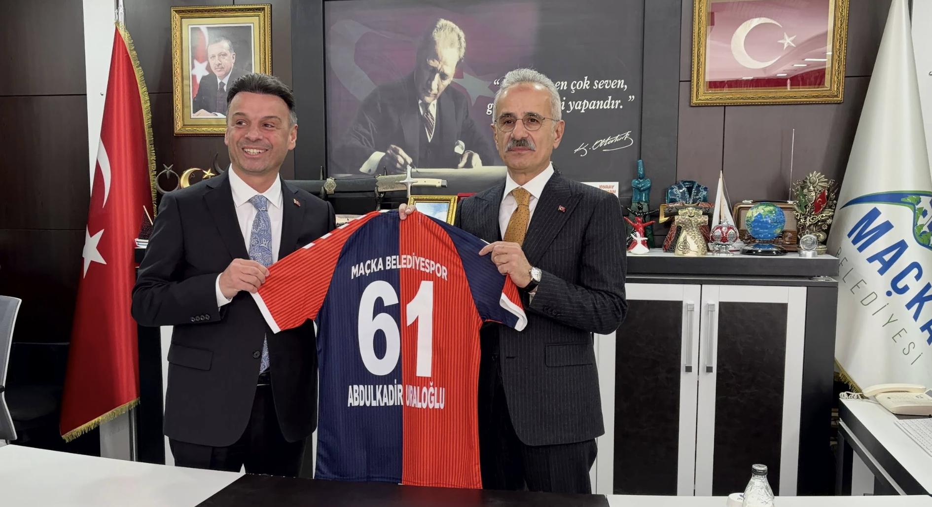 Maçka Belediye Başkanlığı ziyaretinde; Trabzon Büyükşehir Belediye Başkanı Ahmet Metin Genç, AK Parti Trabzon İl Başkanı Sezgin Mumcu ve Trabzon Valisi Tahir Şahin de yer aldı. Ziyaret sırasında ilçeye yönelik çalışmalar ve yatırımlar hakkında değerlendirmelerde bulunuldu. Belediye ziyaretinin ardından Bakan Uraloğlu ilçede esnaf ziyaretinde bulundu.