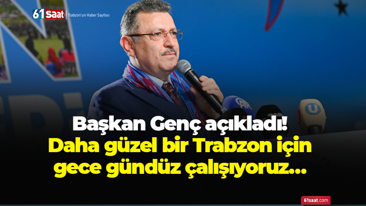 Başkan Genç sözlerini şu cümlelerle tamamladı, “Şu anda da önemli iki başlığımız var. Cumhurbaşkanımızın desteğiyle, iradesiyle stadyumumuzun yanında bir de şehir hastanemiz yükseliyor. Bu vesileyle yoğun şehir içi trafiğini daha üst standartta çözmek adına, hem hızlı hem de konforlu ulaşımı sağlamak için inşallah Sayın Ulaştırma Bakanımız Abdulkadir Uraloğlu’nun yoğun desteği, ilgisi ve katkısıyla 8 Nisan’da şehir içi raylı sistemimizin uygulama projesinin ihalesini gerçekleştiriyoruz. Şimdiden hayırlı, uğurlu olsun. Kıymetli Bakanımıza buradan çok teşekkür ediyorum. Ay, gün, saat takip ettim ve inşallah yapımına başlıyoruz. Bir büyük projeyi de arz edeyim. Trabzon’umuza ulaşım için bizim havalimanımız 3 milyon kapasitedeydi ve yetmiyordu. Büyük gövdeli uçaklar inemiyordu. 10 milyon kapasiteli Trabzon Uluslararası Havalimanımızın da 27 Aralık’ta ihalesini yaptık. Sözleşmesi imzalandı ve başlandı. Şimdiden o da hayırlı uğurlu olsun. Amacımız şu: Ülkemizin her karış metrekaresine hizmet eden, hizmetlerin hamisi olan Cumhurbaşkanımızın memleket sevdasına ve hizmet aşkına, kendi şehirlerimizde de ayak uydurmak ve Trabzon’umuzun standardını yükseltmektir. Burada yaşayan sevgili hemşehrilerimize daha güzel bir Trabzon sunmak istiyoruz. Her hemşehrimizin şehriyle gurur duymasını arzu ediyoruz. Bunun için merak etmeyin; gece gündüz demeden çalışmaya devam edeceğiz.”