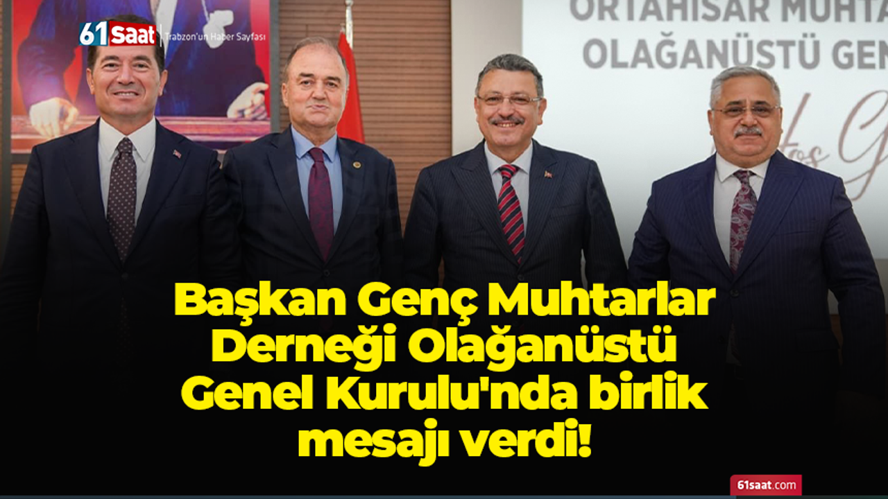 Başkan Genç, “Şu anda 716 mahallemizde sizin gibi değerli mesai arkadaşlarımız var. El birliğiyle bu dönemi güzel bir şekilde tamamlayalım. Hep şunu söylüyorum; Cenabı Allah hizmet etmeyi nasip etti, biz de birlikte çalışıyoruz. İnşallah güzel hizmetlerle dönemimizi başarıyla tamamlarız. Önemli konularımız ve sorunlarımız var. Özellikle belde belediyelerinden intikal eden ve önceki köylerden dönüşen 36 mahallemizde, başta kanalizasyon olmak üzere yol ve doğal gaz sorunlarını büyük ölçüde çözdük. Kalan sorunlarda ise değerli belediye başkanımızla birlikte çalışmalarımızı sürdürüyoruz. Büyükşehir ve Ortahisar olarak bu hizmet dönemini başarıyla tamamlayacağımıza inanıyorum. Çalışmalarınızı takdir ediyor, emeklerinize sağlık diyorum. Bugün aynı zamanda bir genel kurulu da hep birlikte gerçekleştiriyoruz. Genel kurulumuz hayırlı olsun. Olağanüstü bir genel kurul kararı gerekmiş olabilir; ancak Trabzon’daki ilk muhtarımdan olan ve duayen bir isim olan Muhittin Eyüboğlu’nun tutumu ve hizmet odaklı yaklaşımı takdire şayandır. Kendisine teşekkür ediyorum” diye konuştu.