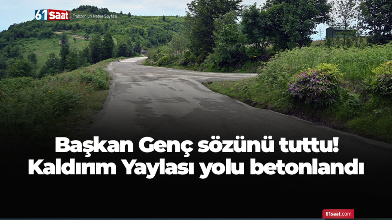 Trabzon Büyükşehir Belediye Başkanı Ahmet Metin Genç, Çarşıbaşı ilçesine bağlı Kaldırım Yaylası’nda geçen yıl karıldığı şenlikte vatandaşlara seslenerek, “Buraya bir daha stabilize yoldan gelmeyeceksiniz” demişti. Büyükşehir Belediyesi Yol Yapım, Bakım ve Onarım Dairesi Başkanlığı ekiplerinin yürüttüğü yoğun çalışmalar neticesinde, 2 bin 800 metrelik yayla yolu betonlandı. Yaylaya ulaşımda yaşanan aksaklıkların giderildiğini ve kalıcı çözüm üretildiğini belirten Çarşıbaşı Yavuz Mahallesi Muhtarı Mustafa Aydın, "Büyükşehir Belediye Başkanımız Sayın Ahmet Metin Genç, sözünü tuttu ve yayla yolumuz betonlandı. Kendisi başta olmak üzere Çarşıbaşı Belediye Başkanımız Ahmet Keleş ile AK Parti İlçe Başkanımız Hakan Kocaman’a da gayretleri için teşekkürlerimizi sunuyoruz. Bu hizmetler vatandaşımızın rahat etmesi için yapılıyor. Emeği geçen herkese minnettarız” dedi. Mahalle sakinlerinden Refik Kotbaş, Muhammet Dağ ve Ali Ertuğral da yapılan hizmetten duydukları memnuniyeti dile getirerek, “Stabilize yoldan yıllarca gelip gittik. Büyükşehir Belediye Başkanımız Ahmet Metin Genç, ‘Buraya bir daha stabilize yoldan gelmeyeceksiniz’ diye söz verdi. Şimdi yolumuz yapıldı, beton döküldü. Başkanımıza ve emeği geçen herkese teşekkür ediyoruz” dediler.