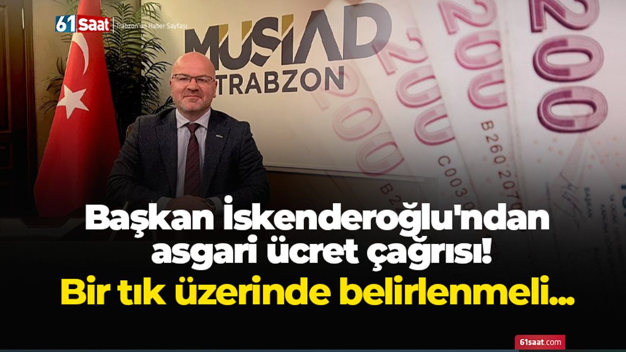 MÜSİAD Trabzon Şube Başkanı Mesut İskenderoğlu, "Genel Başkanımızın da ifade ettiği gibi, yıllık olarak TÜİK’in belirlediği enflasyon oranına Türkiye’deki gelişmişlik ve büyüme payından da bir oran eklenerek, enflasyonun bir tık üzerinde bir asgari ücret artışı yapılmasının doğru olacağını düşünüyoruz” dedi.