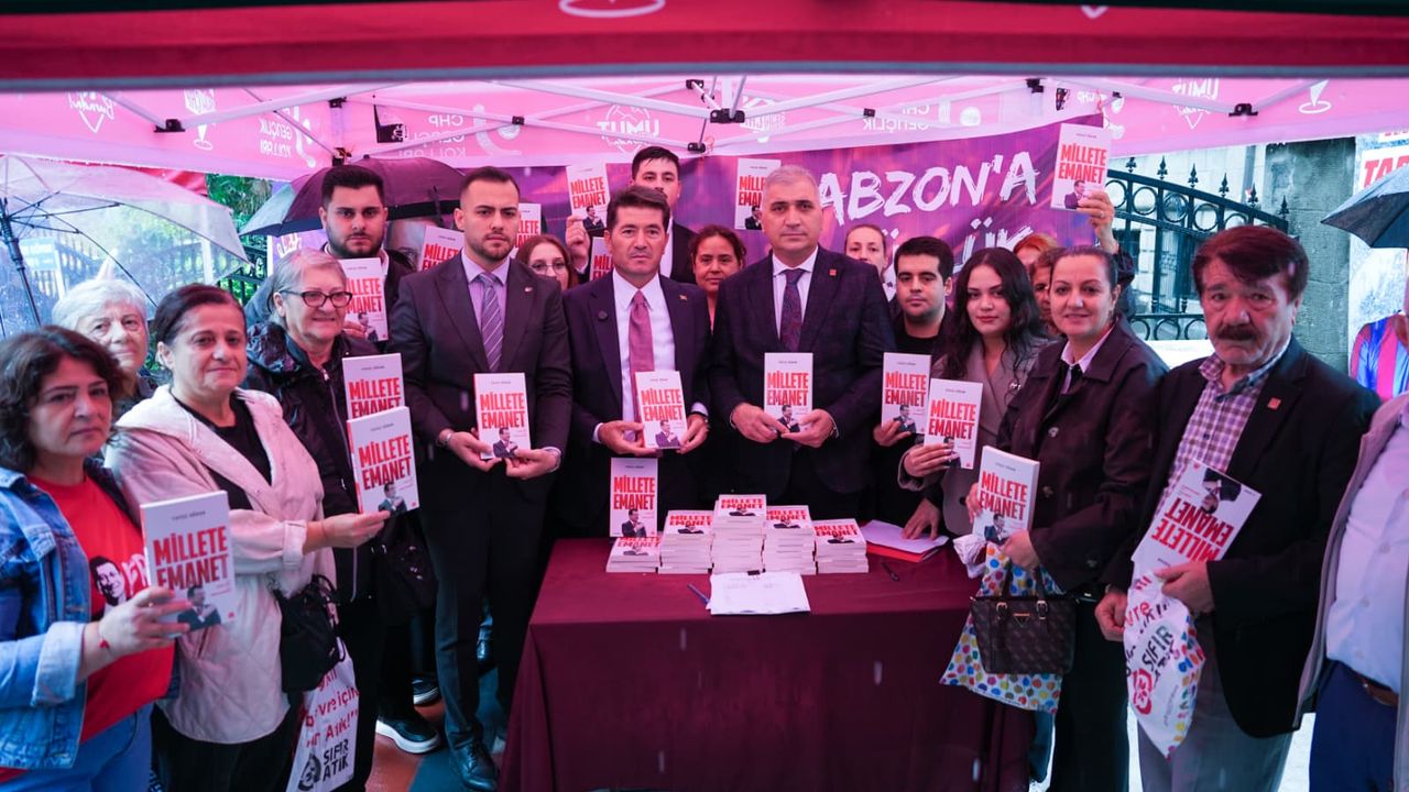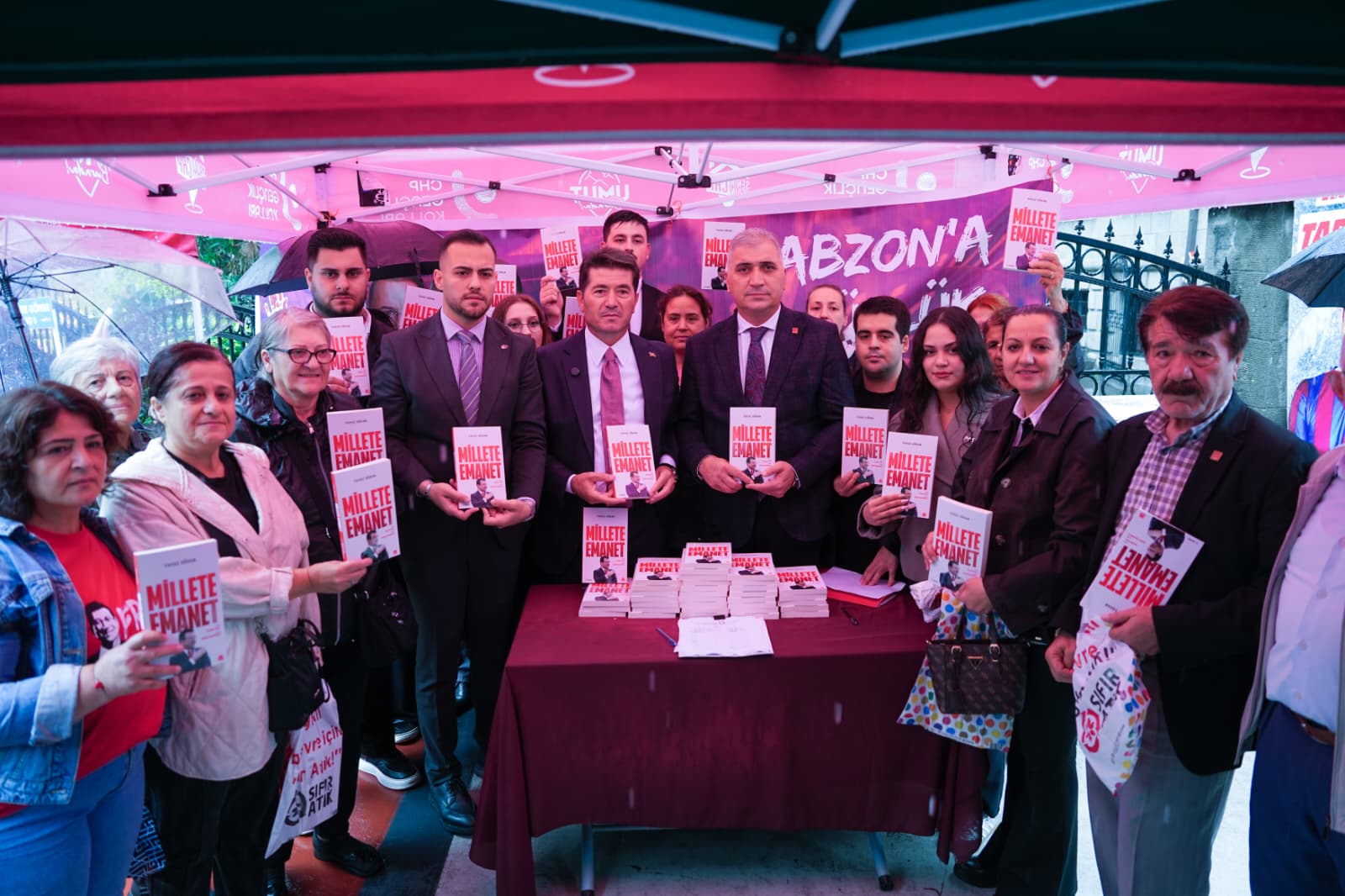 Ortahisar Belediye Başkanı Ahmet Kaya, tutuklu bulunan İstanbul Büyükşehir Belediye Başkanı ve CHP Cumhurbaşkanı Adayı Ekrem İmamoğlu’nun mücadelesini anlatan ‘Millete Emanet’ adlı kitabın tanıtımı ve satışı için CHP Ortahisar İlçe Başkanlığı tarafından kurulan standı ziyaret etti ve vatandaşların bu kitabı edinmesi için çağrıda bulundu. Uzun Sokak'ta düzenlenen programa Başkan Kaya’nın yanı sıra, Belediye Başkan Yardımcıları Cüneyit Zorlu, Celal Akaç ve Mustafa Özer İskender, CHP Ortahisar İlçe Başkanı Haluk Batmaz, Belediye Meclis Üyeleri, CHP Gençlik Kolları Genel Başkan Yardımcısı Oğulcan Çavuşoğlu, CHP Ortahisar Gençlik Kolları Başkanı Enes Turan Saral, CHP Ortahisar Kadın Kolları Başkanı Şennur Güler Özkan, partililer ve çok sayıda vatandaş katıldı.