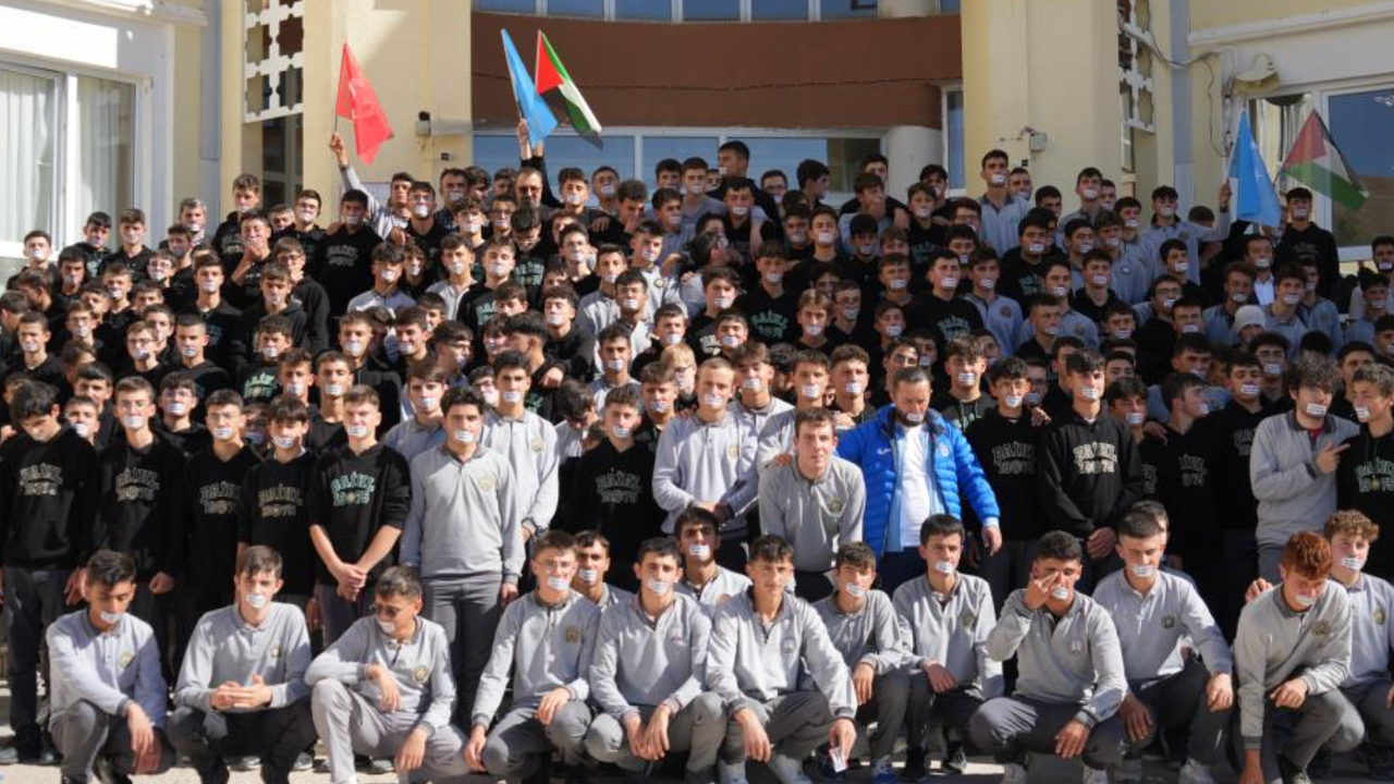 Etkinlikte öğrenciler ağızlarına 'Söz tükendi! ayağa kalk ey insan' yazılı bantlar yapıştırarak, İsrail'in Gazze'de uyguladığı soykırımı protesto etti. Okul bahçesinde gerçekleştirilen etkinliğe öğrencilerin yanı sıra öğretmenler, okul idaresi ve personel de katıldı.