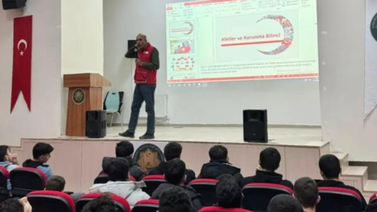 Okulda düzenlenen seminerde, afetlere karşı bireysel farkındalığın artırılmasına yönelik bilgiler paylaşılırken, öğrencilerin korunma bilinci kazanmasına katkı sunulması amaçlandı.