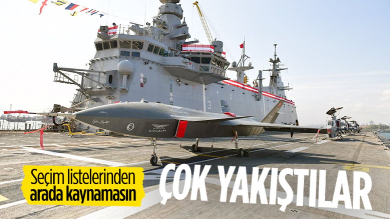 Savunma sanayisini arşa çıkarak olan ve Türk mühendisler tarafından geliştirilen Deniz Kuvvetleri Komutanlığı envanterine girmeye hazırlanan milli TCG Anadolu ve Bayraktar Kızılelma yan yana...