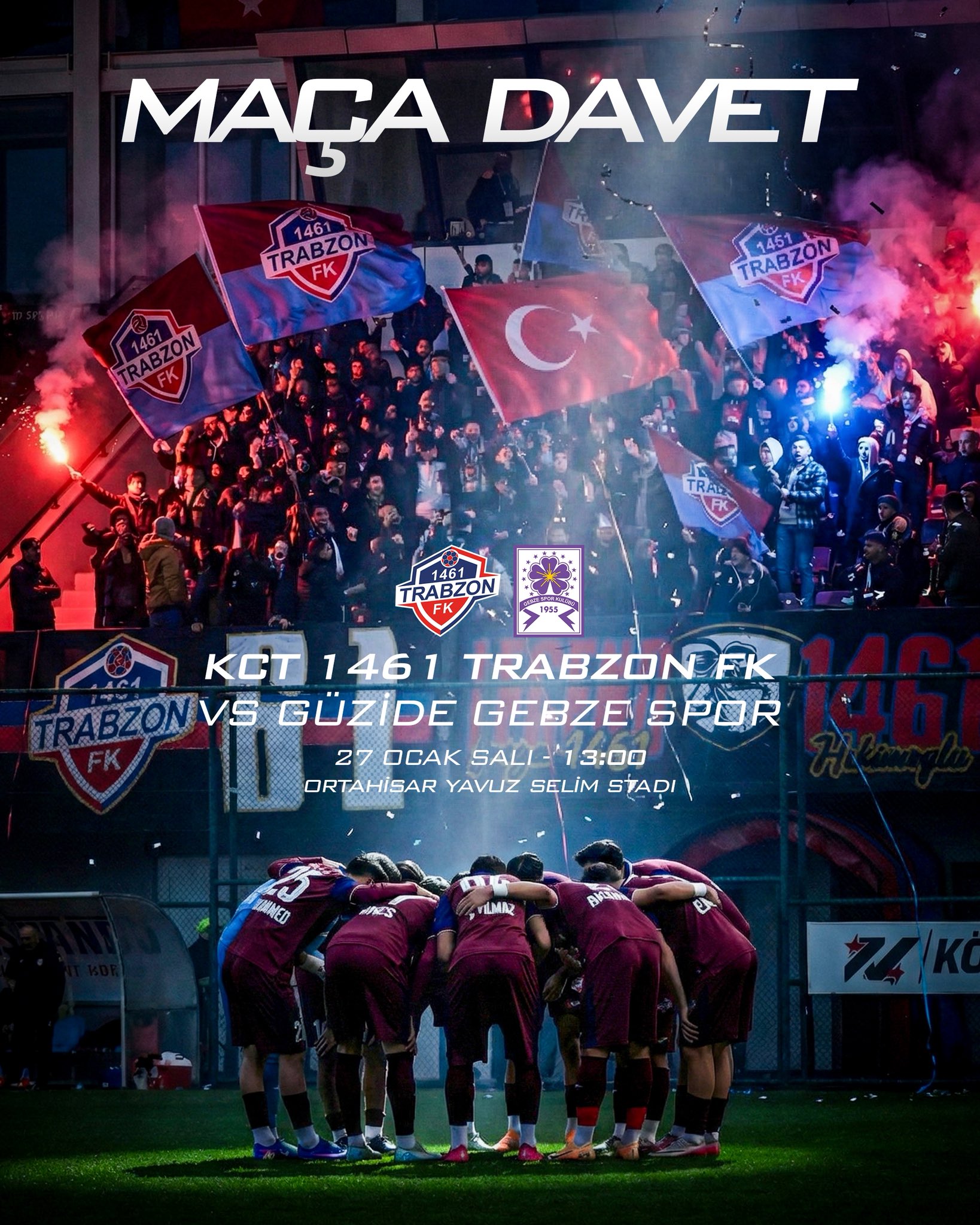 KCT 1461 Trabzon FK’nın açıklamasında taraftarlara çağrıda bulunularak, “Tüm taraftarlarımızı takımımıza destek olmaya, bizleri yalnız bırakmamaya davet ediyoruz” ifadelerine yer verildi.