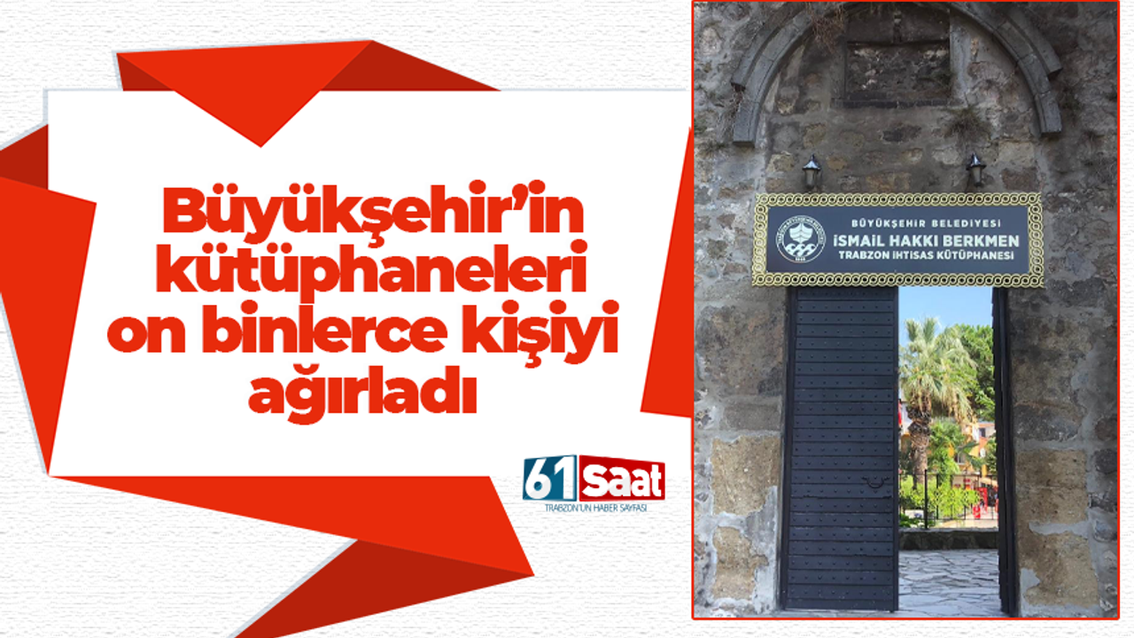 Trabzon Büyükşehir Belediyesi bünyesindeki kütüphaneler büyük ilgi görüyor. Şehit Pilot Yüzbaşı Burak Gençcelep Millet Kıraathanesi, Botanik Millet Kıraathanesi ve İsmail Hakkı Berkmen İhtisas Kütüphanesi, son bir yılda 89 bin 903 ziyaretçiyi ağırladı. 8 bin 20 basılı eserin bulunduğu Şehit Pilot Yüzbaşı Burak Gençcelep Millet Kıraathanesi 56 bin 103 kişiyle en çok ziyaret edilen merkez olurken, İsmail Hakkı Berkmen İhtisas Kütüphanesi’nden 18 bin 544, Botanik Millet Kıraathanesi’nden ise 15 bin 256 kişi faydalandı.