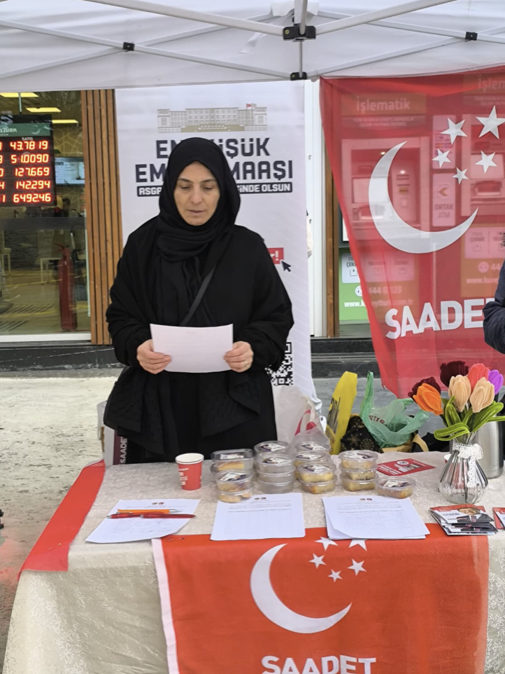 Stant çalışmasında, emeklilerin yaşadığı geçim sıkıntısına dikkat çekilirken, toplanan imzaların Saadet Partisi Milletvekilleri vasıtasıyla Meclise iletileceği belirtildi.