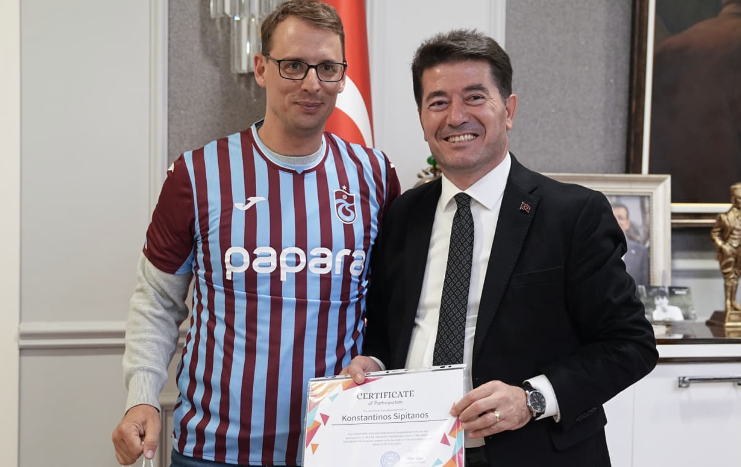 Ziyaretin sonunda misafir öğretim görevlileri, proje sürecinde sağladığı destek ve misafirperverliği için Başkan Kaya’ya teşekkür etti. Başkan Kaya, heyet üyelerine Trabzonspor forması hediye etti.