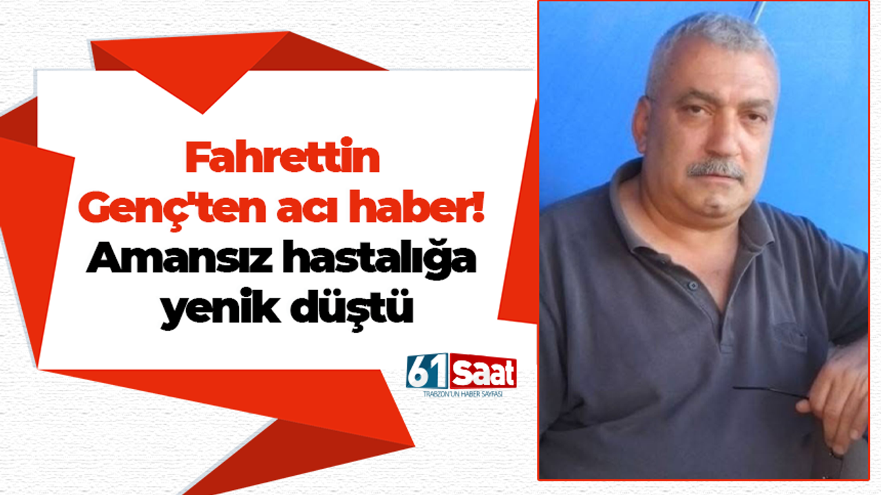Trabzon DSİ Genel Müdürlüğü Lokali'nin uzun yıllar yöneticiliğini yaparak emekli olan Fahrettin Genç bir yıldır mücadele ettiği amansız hastalığa yenik düştü. Hayatını kaybeden Genç'in cenazesi, 24 Şubat Salı, Trabzon Maçka Akmescit köy camiinde ikindi namazına müteakip kılınacak cenaze namazının ardından aynı yerdeki aile kabristanlığına defnedilecek.