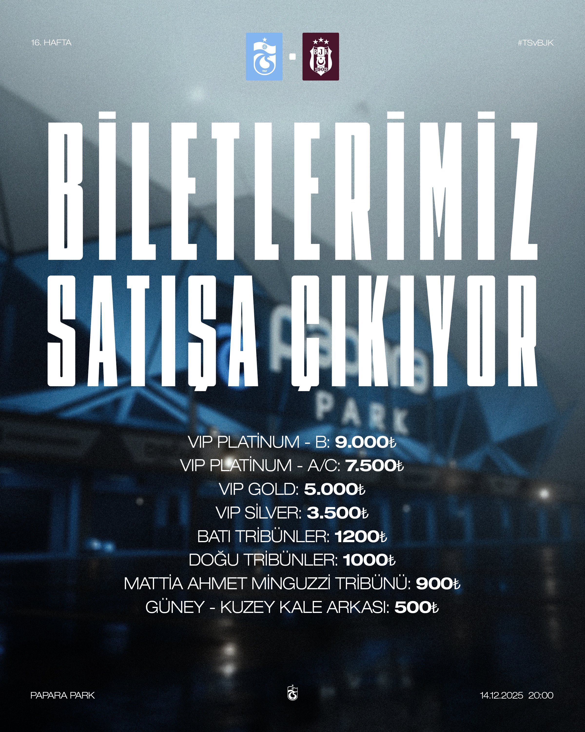 Öte yandan Trabzonspor, Trendyol Süper Lig Mehmet Ali Yılmaz Sezonu’nun 16. haftasında sahasında Beşiktaş'ı konuk edecek. Kapalı gişe oynanması beklenen karşılaşmanın biletleri bugün 12.00'de satışa çıkacak.