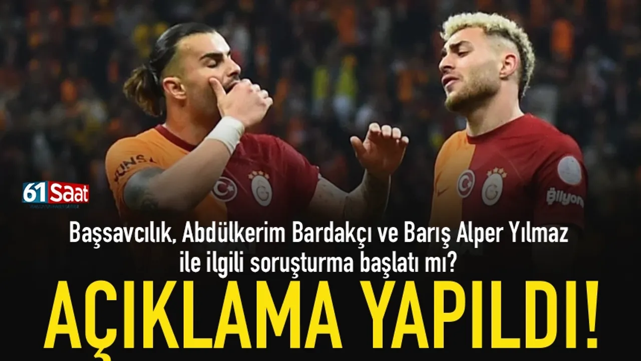 Galatasaraylı futbolcular Barış Alper Yılmaz ve Abdülkerim Bardakçı hakkında özel bir inceleme başlatıldığı iddia edilince, savcılık konuyu netleştirdi ve söz konusu iddiaların gerçeği yansıtmadığını duyurdu.