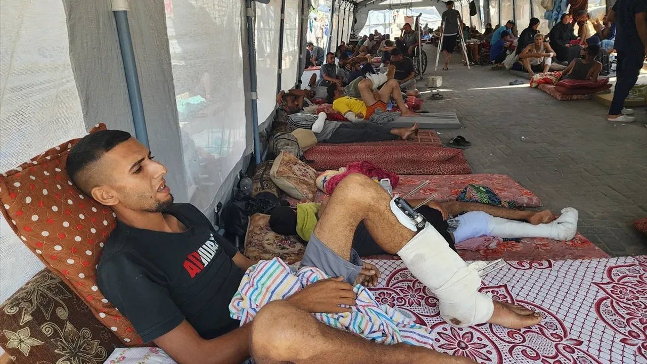 Gazze Şeridi’nin güneyindeki Han Yunus kentinde bulunan Nasır Hastanesi’nin avlusuna kurulan sahra çadırlarında yaklaşık bin yaralı tedavi ediliyor.