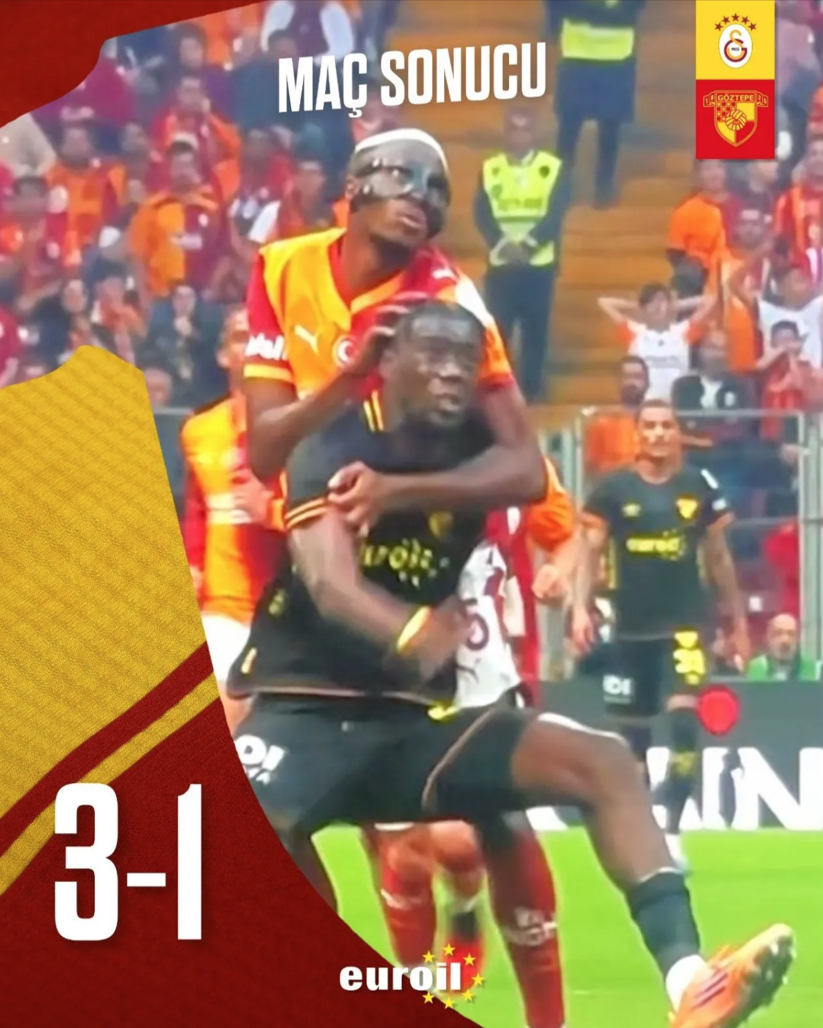 Daha sonra maç sonu paylaşımında Osimhen’in rakibine yaptığı hareketin fotoğrafını kullanan Göztepe Kulübü, paylaşımına “Tek kelimeyle biçildik!” notunu düştü.