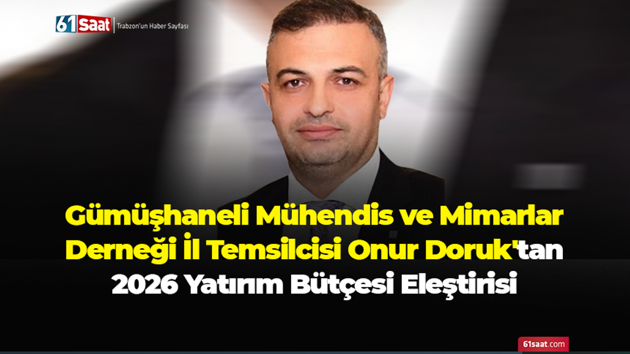 Gümüşhaneli Mühendis ve Mimarlar Derneği İl Temsilcisi Onur Doruk’tan 2026 Yatırım Bütçesi Değerlendirmesi yaptı. Doruk açıklamasında şu ifadeleri kullandı: