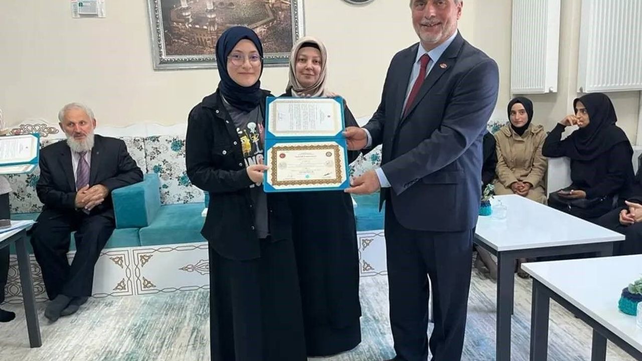 Hafızlık belgesi almaya hak kazanan hafızlara belgeleri İl Müftüsü Abdurrahman Şahin, İl Müftü Yardımcıları Abdullah Aksoy ve Fatma Tuba Altın tarafından takdim edildi.
