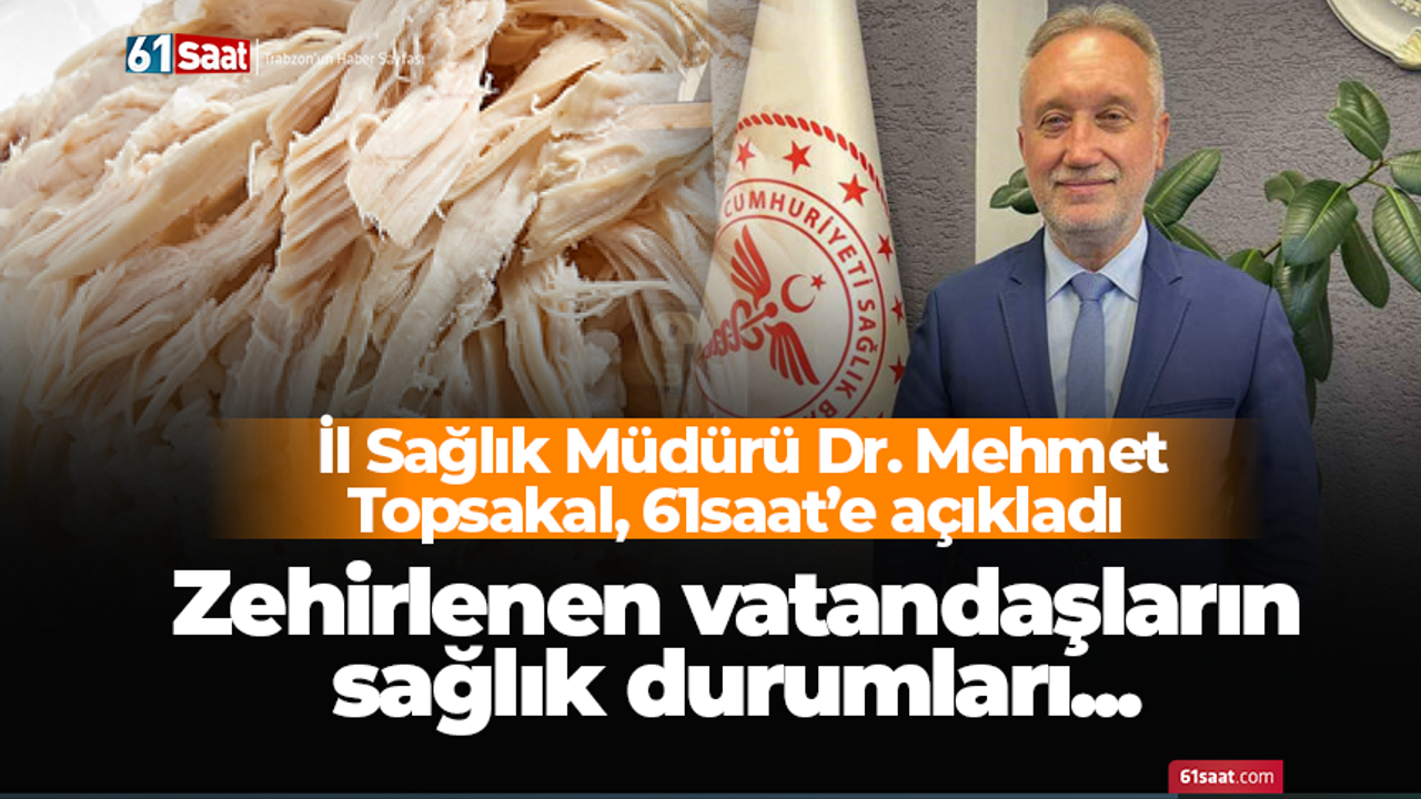 Trabzon İl Sağlık Müdürü Dr. Mehmet Topsakal, “Mahallemizde düğünde yenilen yemek sırasında kusma belirtileri ile daha çok Sürmene ilçemizde muhtemeldir ki kız tarafı Sürmene’deymiş orada tüketmeye başlıyorlar. Biz teyakkuza geçince gelen sayısı 30-35 olurken daha fazlası gelebilir diye tedirgin olduk. Sürmene haricinde de vakalar geldi. Gece saat 02.30 - 03.00’a doğru gelenlerin hepsi hemen hemen genel durumdaydı. Sabah 07.30 itibariyle hemen hemen hepsi taburcu edildi ” dedi.