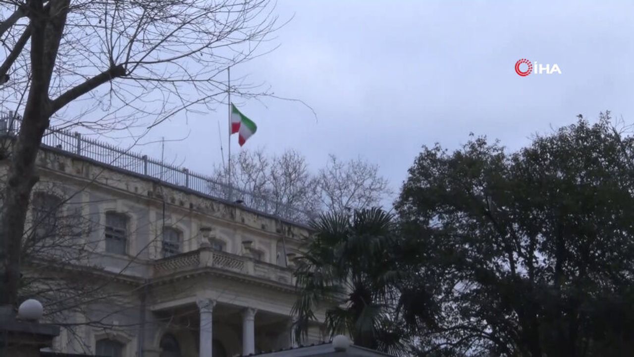 Alınan yas kararı kapsamında İstanbul’daki İran İslam Cumhuriyeti Başkonsolosluğu’nda bayrak yarıya indirildi.