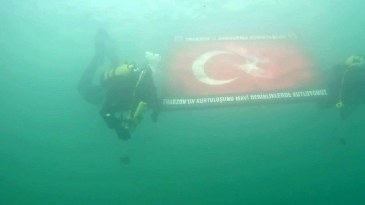 24 Şubat Trabzon’un kurtuluşunun 107. yıl dönümü çeşitli etkinliklerle kutlanıyor. Trabzon İl Jandarma Komutanlığı Arama Kurtarma Sualtı ekipleri, kentin düşman işgalinden kurtuluşu etkinlikleri kapsamında Trabzon açıklarında dalış yaptı. Jandarmaya ait bot ile hazırlıklarını yaparak mavi sulara açılan jandarma ekipleri, Türk bayrağı ile Karadeniz’in derinliklerinde Trabzon’un kurtuluşunu kutladı.