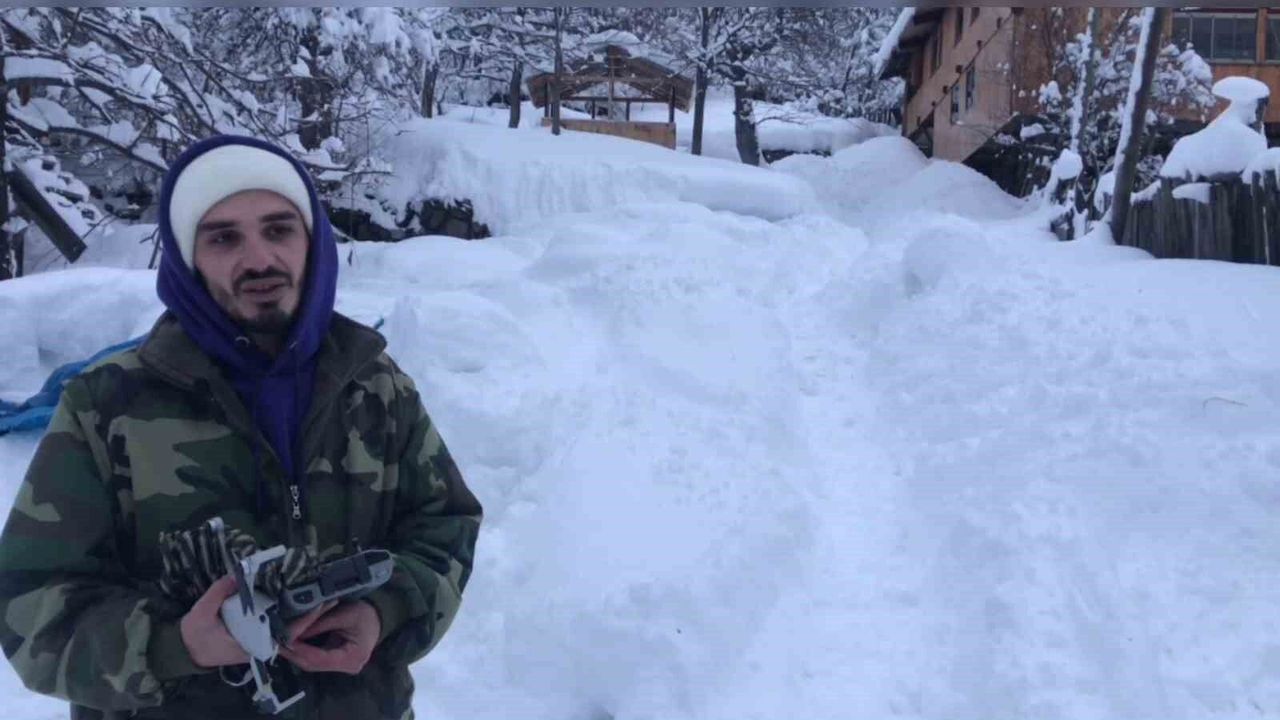 İlçeye bağlı Meydancık köyünde yaşayan içerik üreticisi Onur Ekin, yoğun kar yağışı nedeniyle evinin bulunduğu mahallenin yolları kapanınca market alışverişi için ilginç bir yöntem kullandı.