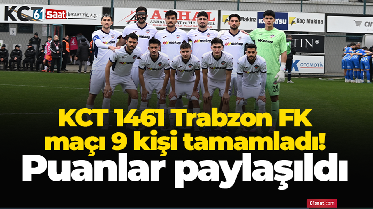 KCT 1461 Trabzon FK’da Yusuf Şahin Örnek karşılaşmanın 65 ve 72.dakikalarında gördüğü sarı kartlar sonrası kırmızı kart ile oyun dışında kaldı. Enes Karakuş’un da 87.dakikada direkt kırmızı kart görmesiyle karşılaşmayı 9 kişi tamamladı.