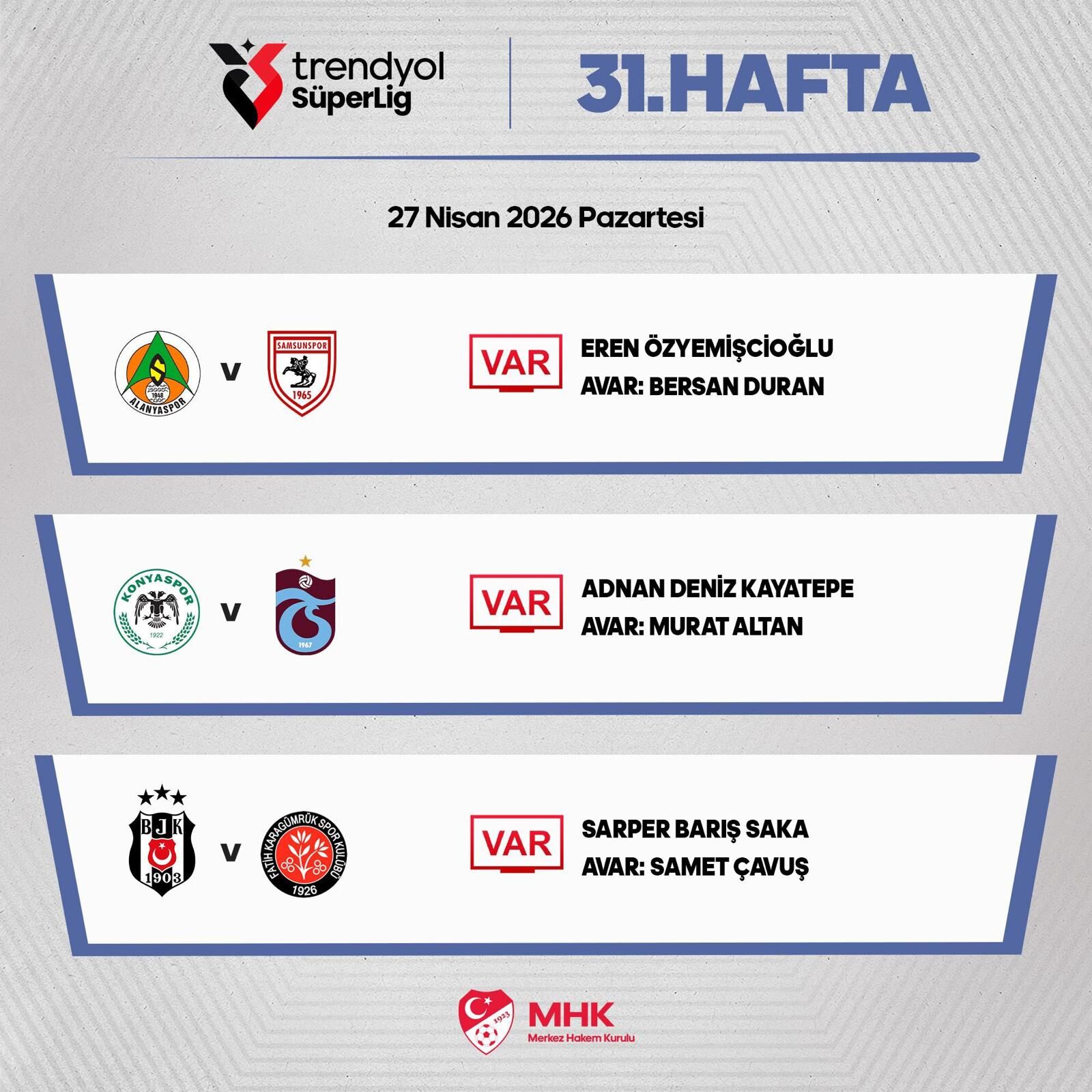 Trabzonspor’un Konyaspor’a konuk olacağı karşılaşmanın VAR hakemi Adnan Deniz Kayatepe olacak, AVAR’da ise Murat Altan görev alacak. Karşılaşmayı hakem Halil Umut Meler yönetecek. 20.00'de başlayacak olan karşılaşma beIN SPORTS 1 ekranlarından yayınlanacak ve tüm gelişmeler ile birlikte canlı anlatım 61saat'te yer alacak.