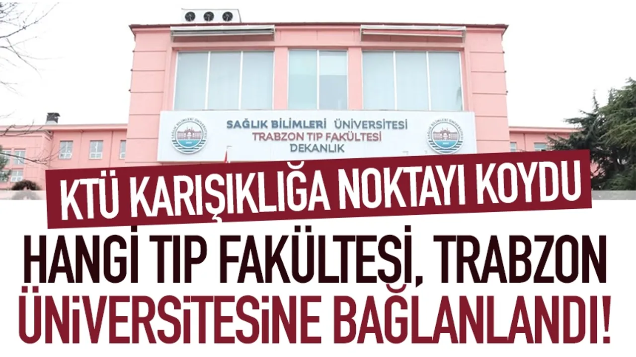 KTÜ’den yapılan açıklamada Trabzon Üniversitesi’ne bağlanan Tıp Fakültesi’nin KTÜ Tıp Fakültesi ile ilgili olmadığı, Sağlık Bilimleri Üniversitesine bağlı Trabzon Tıp Fakültesinin olduğu belirtildi.