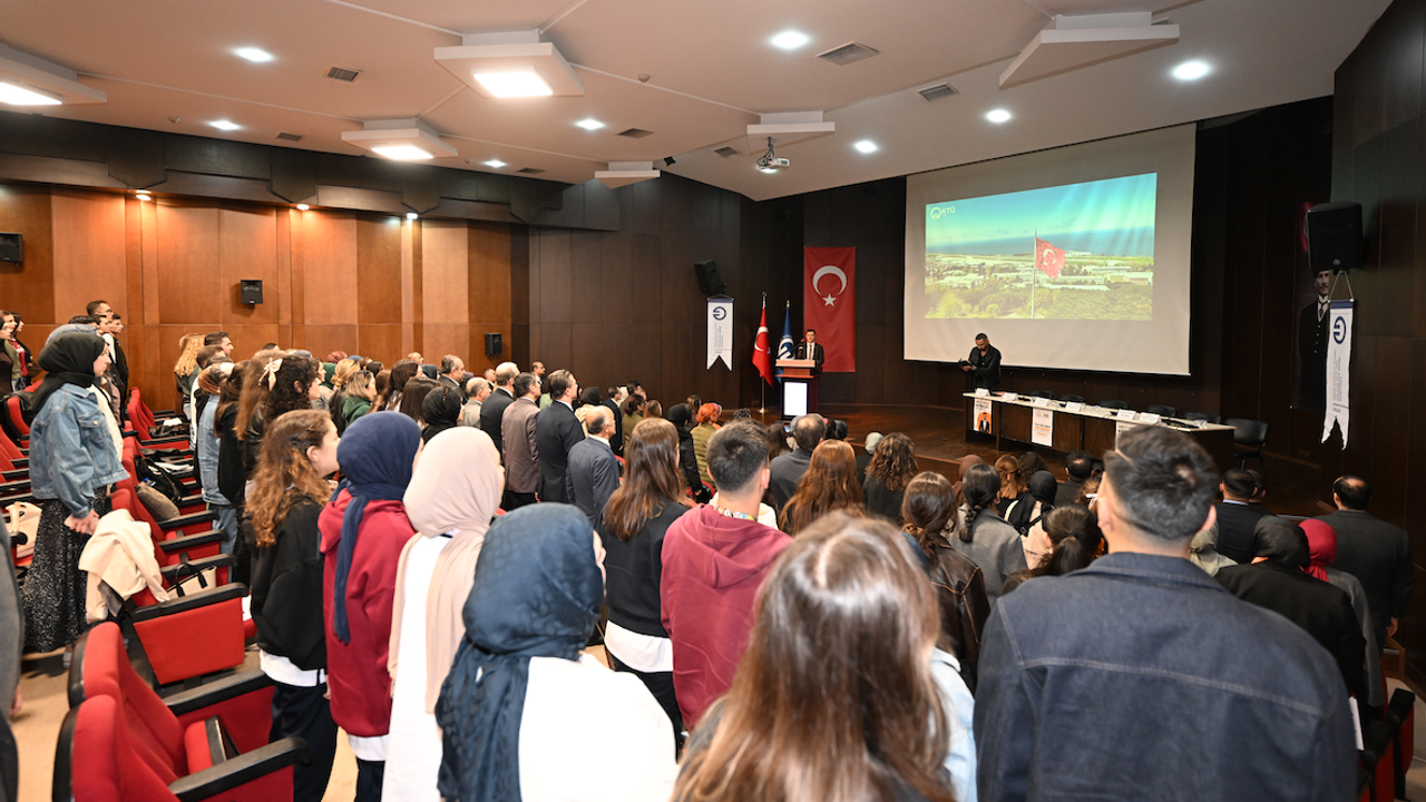 Saygı duruşu ve İstiklal Marşı’nın okunması ile başlayan programda, açılış konuşması gerçekleştiren KTÜ Rektörü Prof. Dr. Hamdullah Çuvalcı, katılımcılara hitabında “Şiddetin her türlüsü; kimden gelirse gelsin, kime yönelirse yönelsin, kabul edilemez! Ancak kadına yönelik şiddetin, insanlık onuruna yönelen en ağır saldırılardan biri olduğunun altını çiziyor, toplumsal yapıyı temelden zedelediği için daha da yıkıcı sonuçlar doğurduğunu üzülerek ifade etmek istiyorum. Takdir edersiniz ki “kadın” aileyi ayakta tutan, nesilleri yetiştiren, toplumun vicdanını mayalayan ve her türlü saygıyı, hürmeti ve güveni fazlasıyla hak edendir. Bu noktada, en büyük rehberimiz olan Peygamber Efendimiz Hz. Muhammed’in (SAV) şu sözünü hatırlatmak istiyorum: ‘Sizin en hayırlınız, kadınlara karşı en iyi davrananızdır.’ Bu hadis-i şerif, insanlığın bir ölçüsü ve medeniyetin önemli bir ilkesidir. Kadına yönelik her türlü incitici davranış, bu ilkenin ihlalidir ve toplumda asla kabul göremeyecek bir tavırdır.” sözlerine yer verdi.