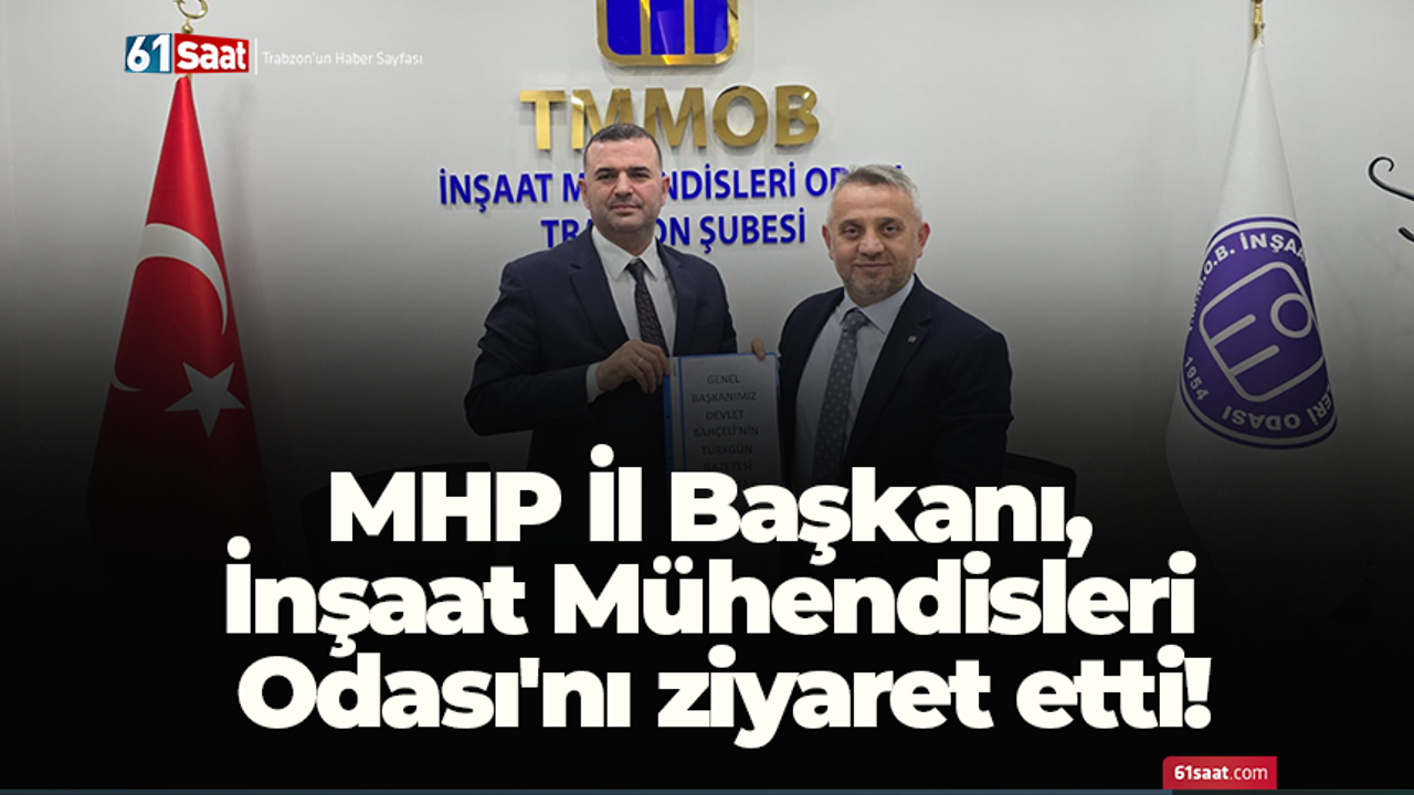 "Hayırlı Günler Komşum" programları çerçevesinde düzenlenen ziyarette, MHP heyeti İnşaat Mühendisleri Odası Başkanı Mustafa Tiryaki ve oda yönetim kurulu üyeleriyle bir araya geldi. Görüşmede, meslek odasının faaliyetleri, sektörün mevcut durumu ve oda ile üyelerinin ihtiyaç ve sorunları masaya yatırıldı.
