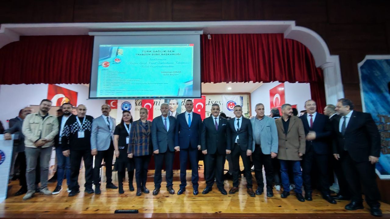 Türk Sağlık-Sen Trabzon Şubesi'nin düzenlediği 8. Olağan Genel Kurulu, hem sendikanın gelecek dönem çalışmalarını belirlemek hem de yeni yönetimi seçmek üzere gerçekleştirildi. Genel kurula ilginin yoğun olduğu dikkat çekti. MHP Trabzon İl Başkanı Tolgay Sivrikaya ve yönetim kurulu üyelerinin kalabalık şekilde genel kurula katıldıkları gözlendi.