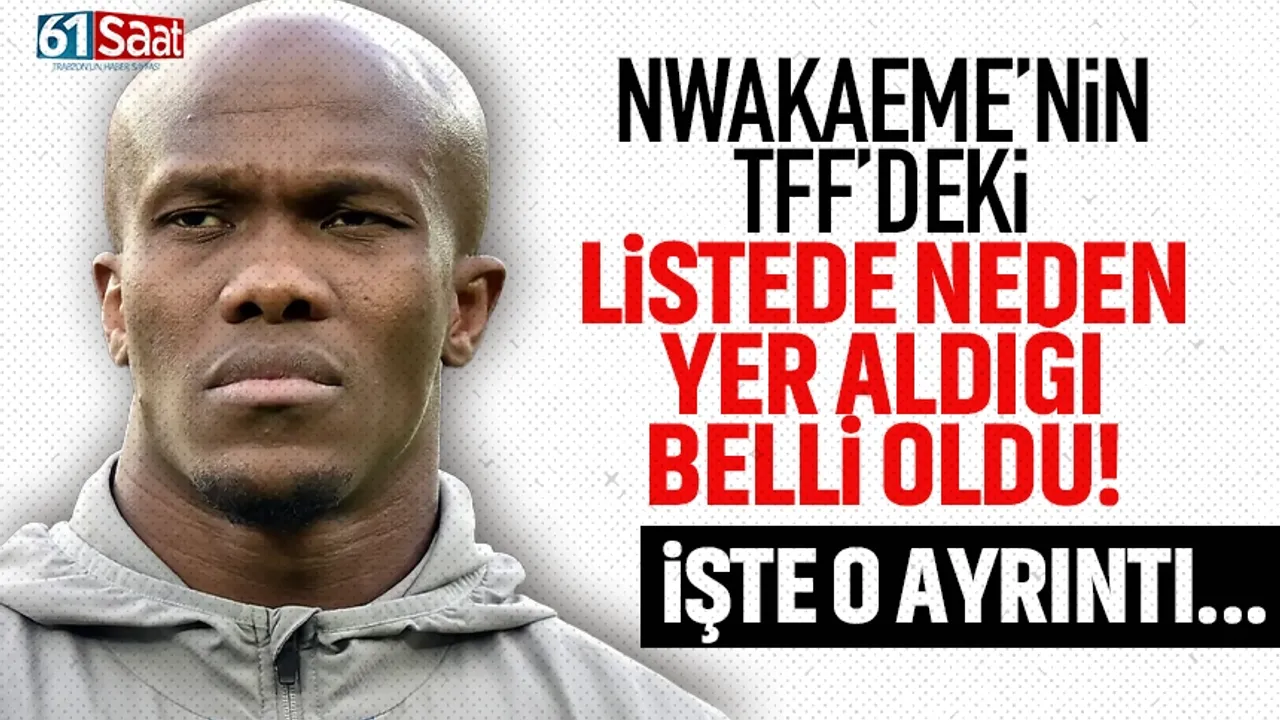 TFF’nin resmi internet sitesinde Trabzonspor’un sözleşmeli futbolcuları arasında yer almaya devam eden Nwakaeme, 14 yabancı kuralı nedeniyle bordo - mavililerin federasyona bildirdiği A takım listesinde ise gösterilmiyor.