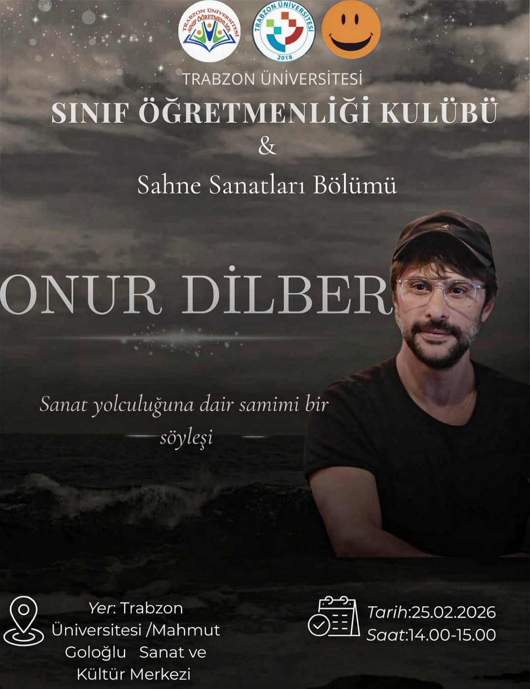 25 Şubat Çarşamba günü Trabzon Üniversitesi Söğütlü Kampüsü içerisindeki Mahmut Goloğlu Sanat ve Kültür Merkezi’nde öğrenciler ile bir araya gelecek olan Onur Dilber’in söyleşisi 14.00-15.00 saatleri arasında gerçekleştirilecek.