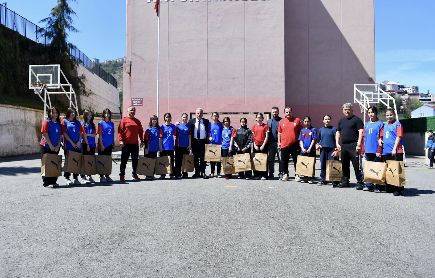 Hediye töreninde konuşan Başkan Yardımcısı Cüneyit Zorlu, “Belediye Başkanımız Ahmet Kaya’nın da mezunu olduğu Ata Ortaokulumuz, futsaldaki başarısıyla bizleri gururlandırıyor. 16 Trabzon şampiyonluğu ve 7 bölge yarı finali başarısı bulunan Küçük Kızlar Futsal Takımımız bu yıl da bölge şampiyonasına katılacak. Başarılı oyunlarını ve yeteneklerini görünce, daha büyük başarılara imza atacaklarına inandım. Kızlarımız gerçekten çok başarılı, disiplinli ve azimli. Başarılarıyla bizleri gururlandıran kızlarımıza, Başkanımız Ahmet Kaya’nın hediyesi olarak futsal ayakkabılarını getirdik. Diğer ihtiyaçlarında da her zaman yanlarında olacağız. Kendilerinden Türkiye şampiyonluğu bekliyor, başarılarının devamını diliyorum” dedi.
