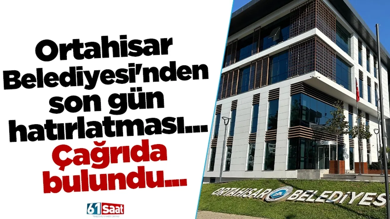 Ortahisar Belediyesi’nden yapılan açıklamada; 2025 yılı Emlak, İlan ve Reklam ile Çevre Temizlik Vergilerinin 2. taksitlerinin son ödeme gününün 1 Aralık Pazartesi olduğu hatırlatılarak mükelleflere çağrıda bulunuldu. Ödemelerin son güne bırakılmamasının hatırlatıldığı açıklamada şu ifadelere yer verildi: