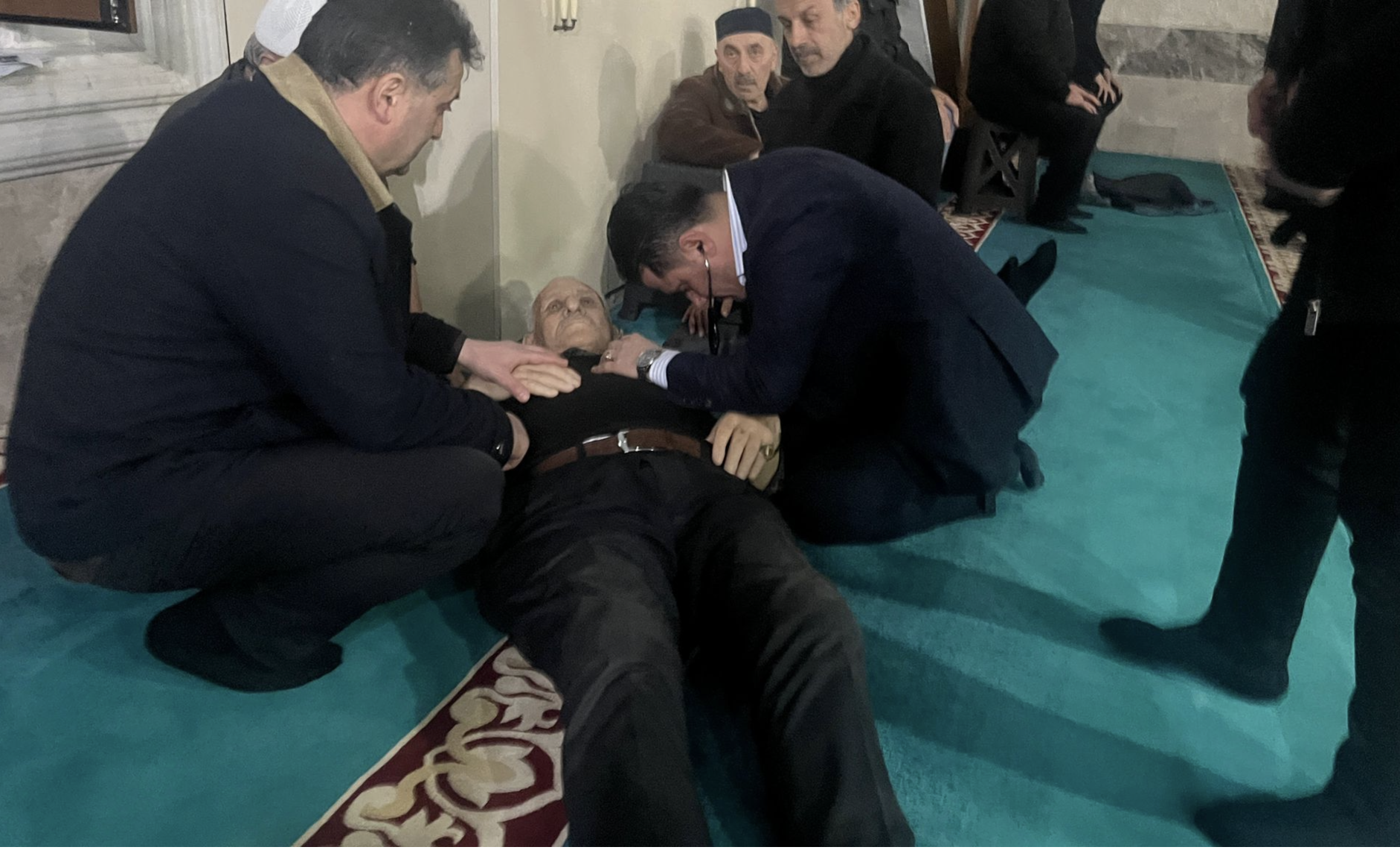 Edinilen bilgilere göre, namaz öncesi bir vatandaş fenalaştı. O esnada camide bulunan ve doktor kimliği de bulunan İlçe Başkanı Seyit Hisoğlu, vakit kaybetmeden müdahalede bulundu. İlk müdahaleyi cami içerisinde yapan Hisoğlu, ambulans ekipleri gelene kadar vatandaşın yanından ayrılmadı. O anlar camide bulunan bir vatandaşın cep telefonu kamerasına da yansıdı.