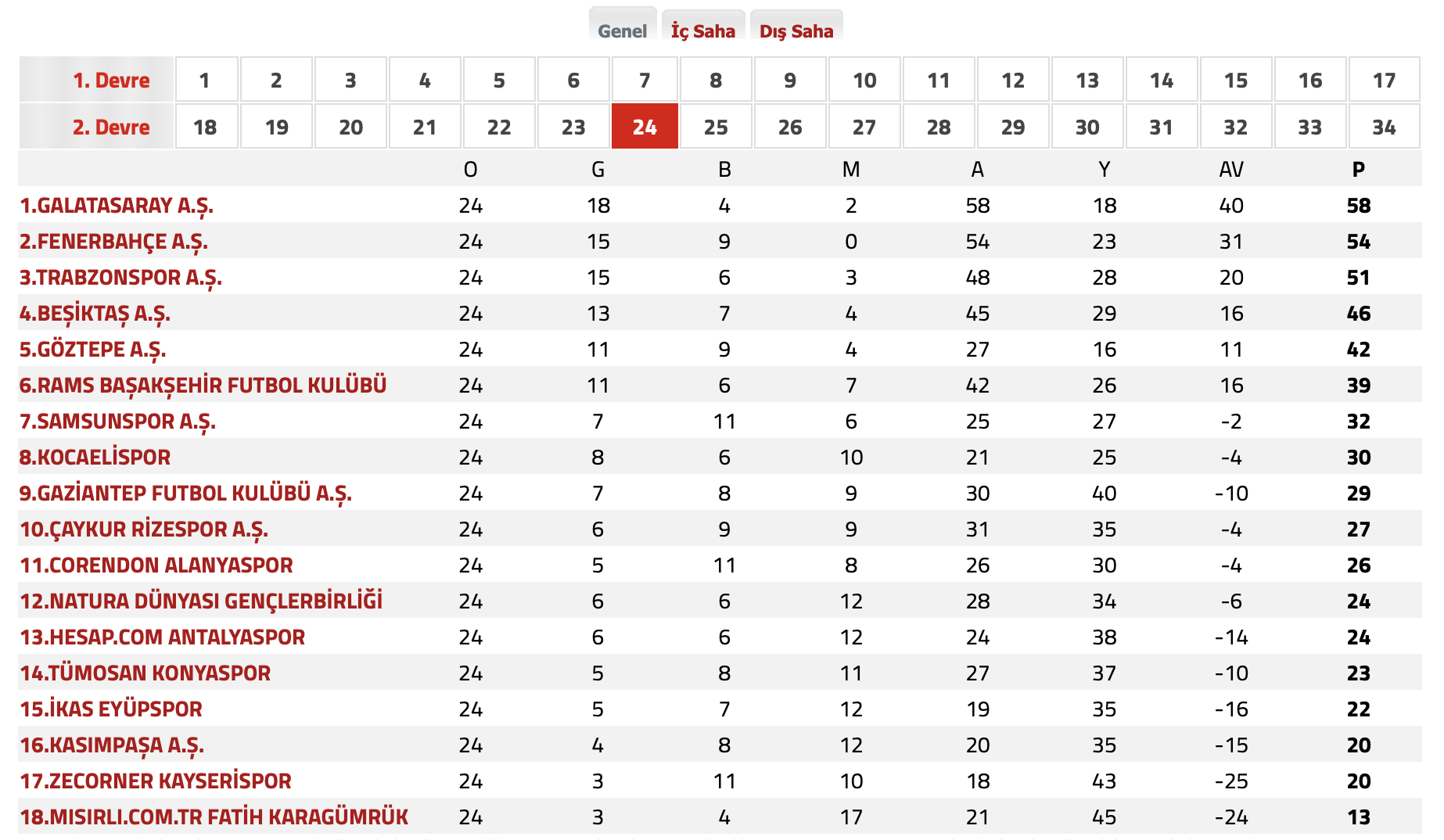 2023-2024 sezonunda yüzde 82 ile dördüncü, 2022-2023’te yüzde 83 ile üçüncü sıradaydı.