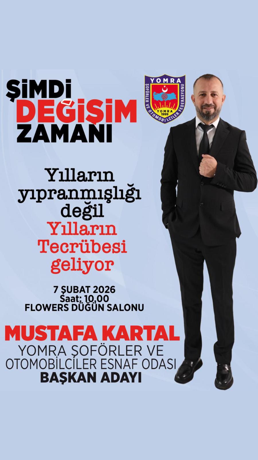 Yomra’da direksiyon artık Mustafa Kartal’da… Yomra Şoförler ve Otomobilciler Esnaf Odası’nda gerçekleşen seçimlerin ardından başkanlık koltuğuna oturan Kartal, daha ilk günden Yomra için büyük hedefler belirlemiş .