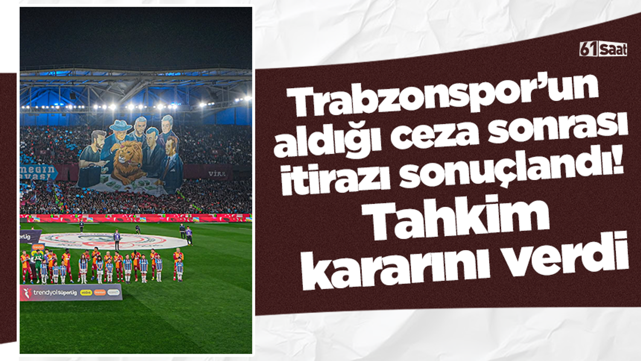 Galatasaray maçında PFDK’ya sevk edilen Trabzonspor’a 740 bin TL para cezası verilmiş, yaklaşık 35 bin taraftarın bulunduğu tribünlerde koltuklar 1 maçlığına bloke edilmişti. Bordo-mavili kulüp bu karara itiraz etmişti.