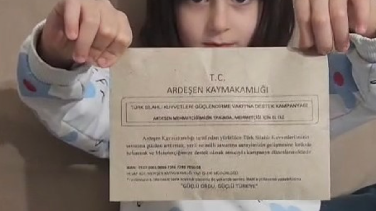 Rize'de Ardeşen Kaymakamlığı tarafından başlatılan Türk Silahlı Kuvvetlerini Güçlendirme Vakfı’na destek kampanyası, duygu dolu anlara sahne oldu. 5 yaşındaki Cansu Zenginal ile 4 yaşındaki Melih Çukur, kumbaralarında biriktirdikleri tüm paraları kampanyaya bağışladı. Kendilerine verilen zarfları harçlıklarıyla dolduran minikler, davranışlarıyla takdir topladı. Bağış sırasında konuşan Cansu Zenginal, "Bu paralarımla oyuncak alacaktım ama askerlerimize göndermek istiyorum. Bir sürü para biriktirdim. Kaç param var bilmiyorum" sözleriyle duygulandırdı.